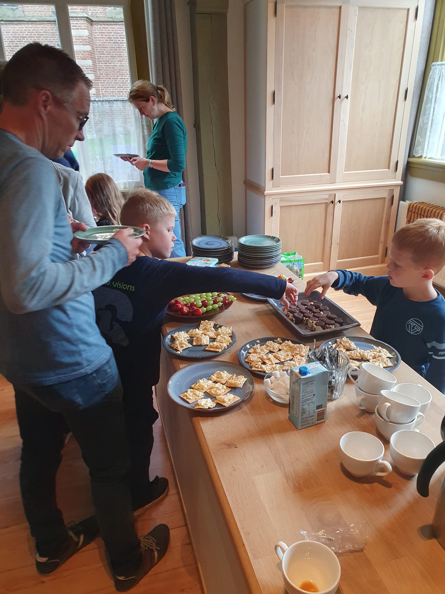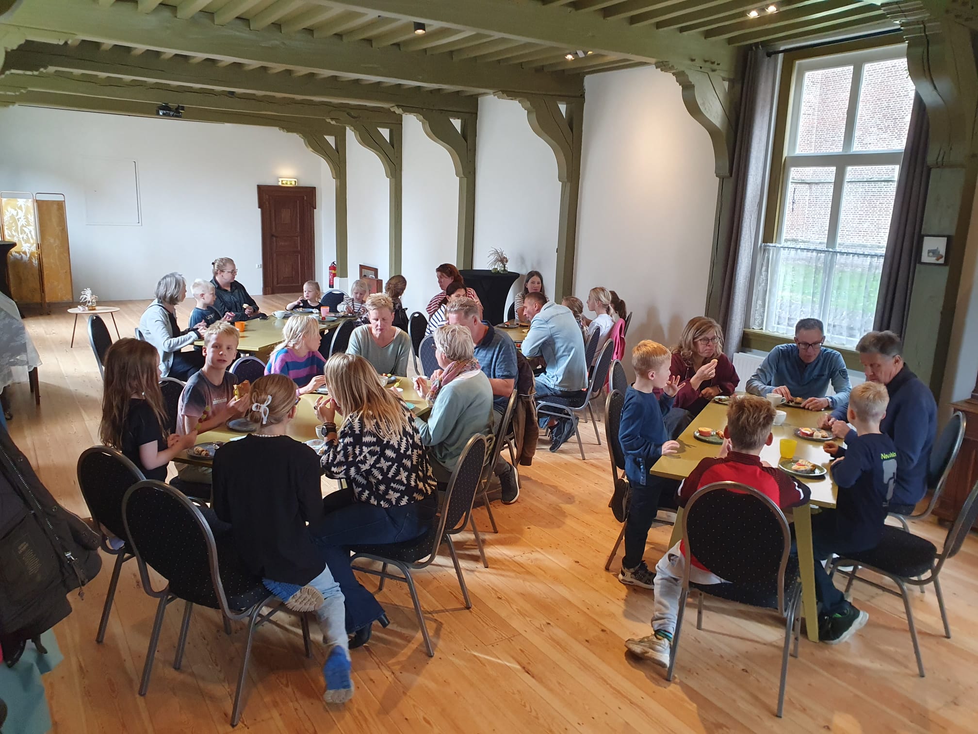 Na de dienst was er voor bijna iedereen nog een stukje appeltaart, die over was van de Fancy Fair van zaterdag.